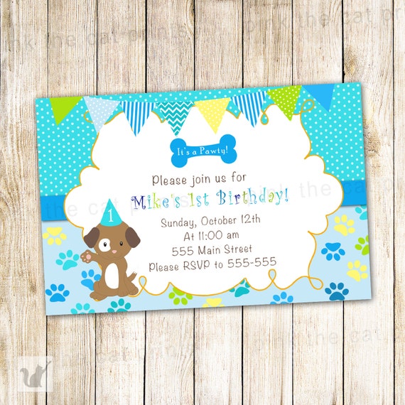 Puppy Birthday Invitation Card Boy Pawty Party Paws Etsy