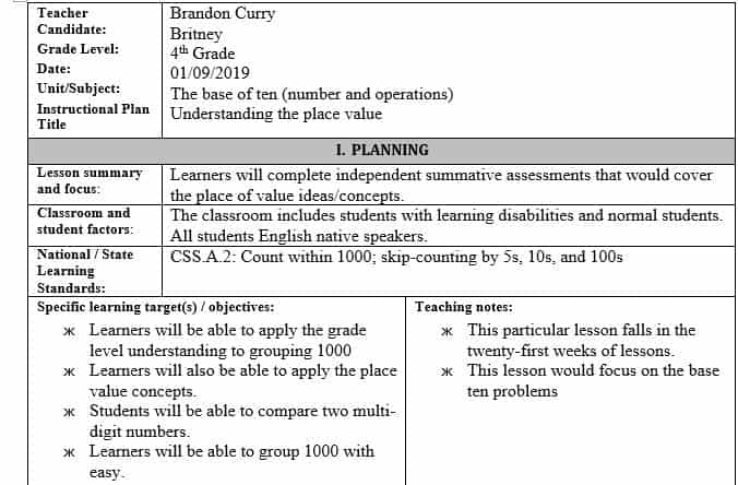 Lesson plan common core templates template grade plans teacher third teaching danielson